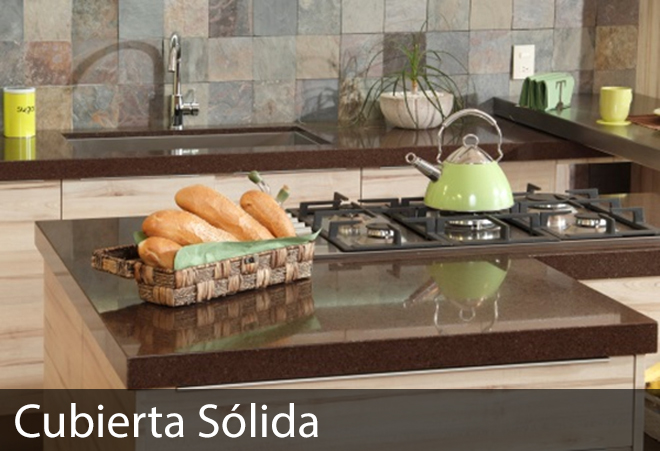 - Superficie sólida compuesta por minerales y acrílico de alta resistencia, que hacen un producto altamente resistente al impacto y al desgaste, totalmente impermeable, protegiendo los gabinetes aumentando su vida útil, no se mancha, no retiene olores, fácil de limpiar, es renovable, se repara con facilidad en caso de que se dañe, sus uniones son imperceptibles.